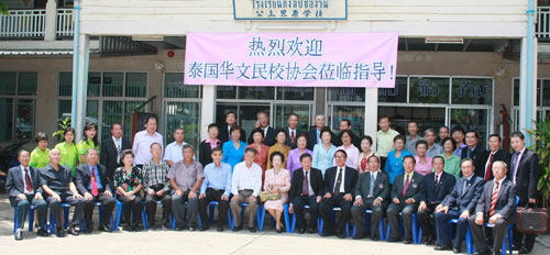 嘉民学校已有六十二年的历史,目前共有学生590人,中文老师共6人(包括志愿者及实习老师)。该校校董会主席郑亚七先生说,今天是嘉民学校值得铭记的一天,创校62年来,该团是学校历史上最大的教育访问团,能得到梁主席莅临指导,感到莫大的安慰与荣幸,表示一定要竭尽绵力,不辜负梁冰主席的期望,手拉手、心连心共同推动华教发展。 梁冰主席十分钦佩该校董会主席为学校作出的贡献,郑亚七主席十分支持学校中文教育的发展,每次老师带学生参加比赛或活动回来,他都会予以奖励,虽然他不会讲中文,但他有一颗发展华教的赤诚之心。 该校中文校长高庆春是一位积极、热心的华文老师。近两年,他积极协助校董会筹划学校中文教育的发展,积极引进志愿者老师,学校用先进的教学投影仪播放该校中文发展的成果给梁冰主席及访问团成员留下了深刻的印象。 来自中国的志愿者老师编排表演的精彩节目《大合唱》、《诗歌朗诵》、《竹排舞》和中乐团受到大家的好评,梁主席称赞该校志愿者老师,在一个月时间里能教出这样的成绩非常不易,特别奖励小演员一万泰铢的奖金。该校校董会秘书林锡钦、理事吴坤城、黄潮松、黄万斗、张金亮,郑亚喜等四十余位校董还陪同参观学校的中文教学设施。